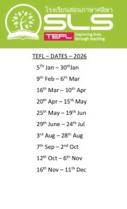Part-time & trainer interactive on-line (120 hour) TEFL course is also available for baht 38,000 THB. Check start date with SLS